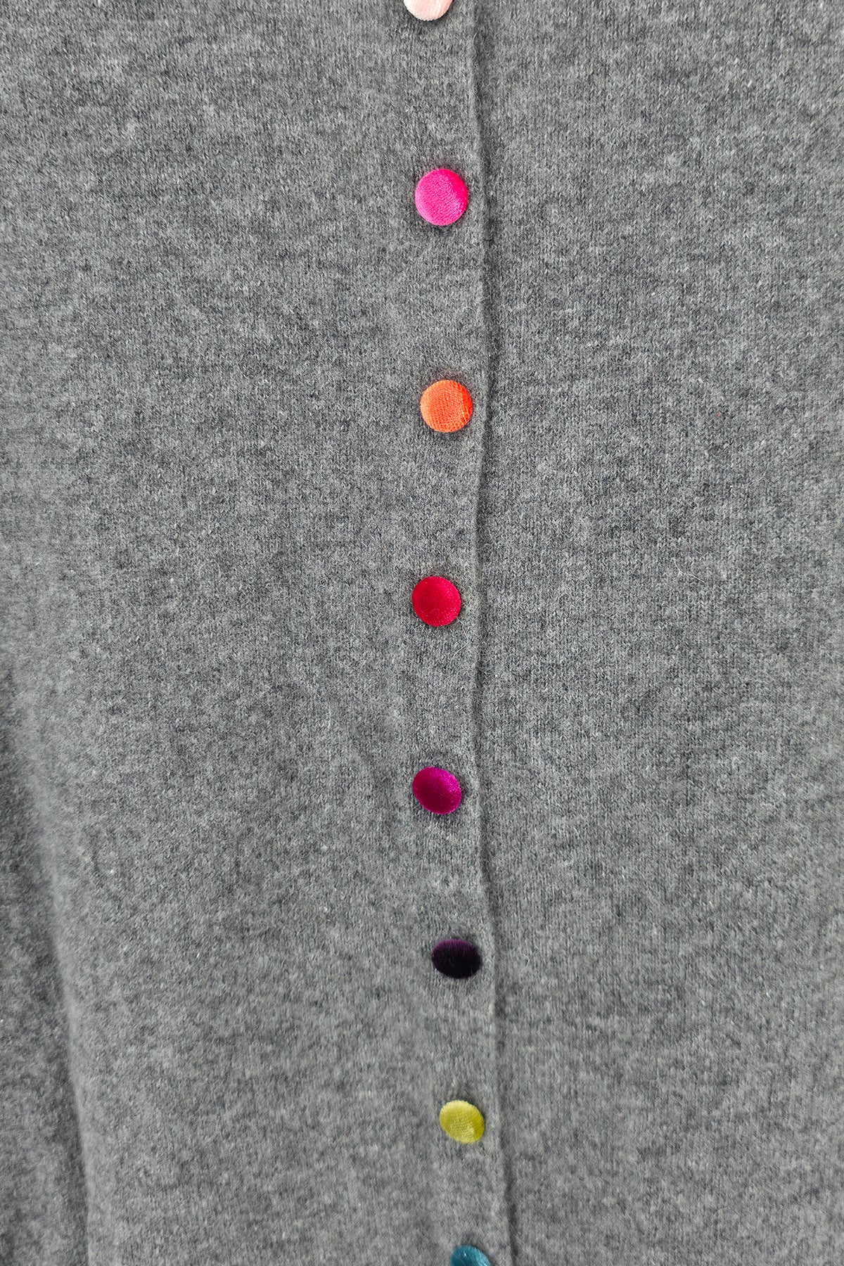 The Estheme Cashmere WES1339H 71322 Tin Grey Button Back Jumper is a relaxed knit in soft tin grey cashmere - defined by its playful multicolour button detail and easy silhouette.