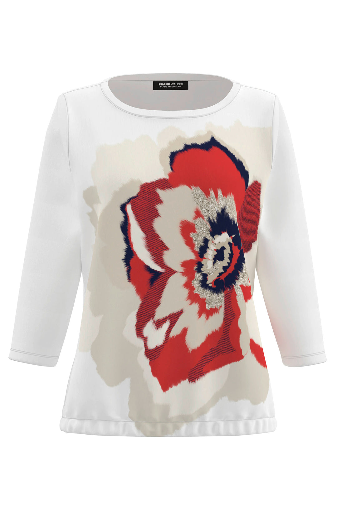 Frank Walder 109.402 647 036 Red Flower Print 3/4 Sleeve T-Shirt