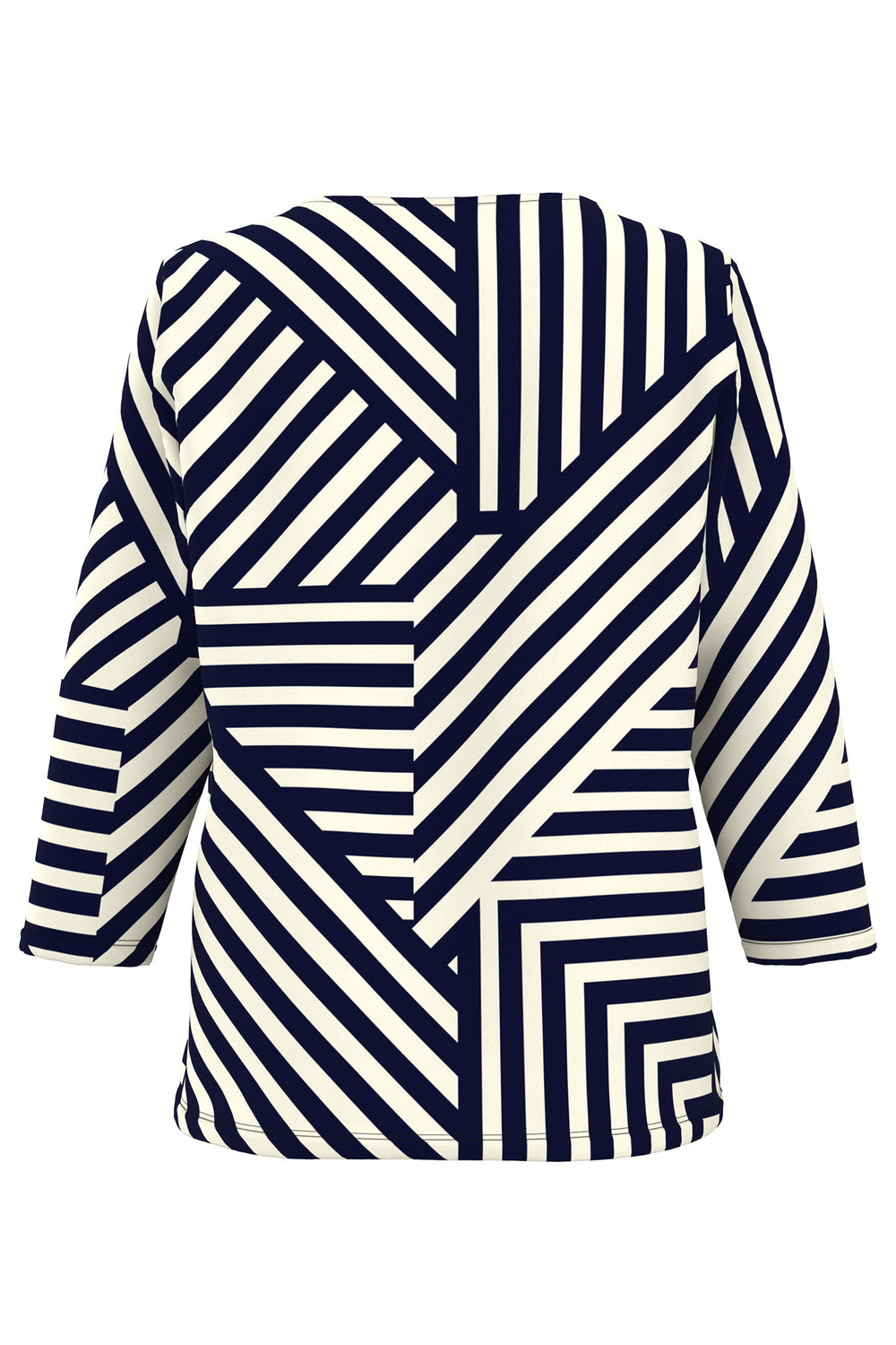 Frank Walder 725.406 Navy Geometric Print 3/4 Sleeve Top 539 059