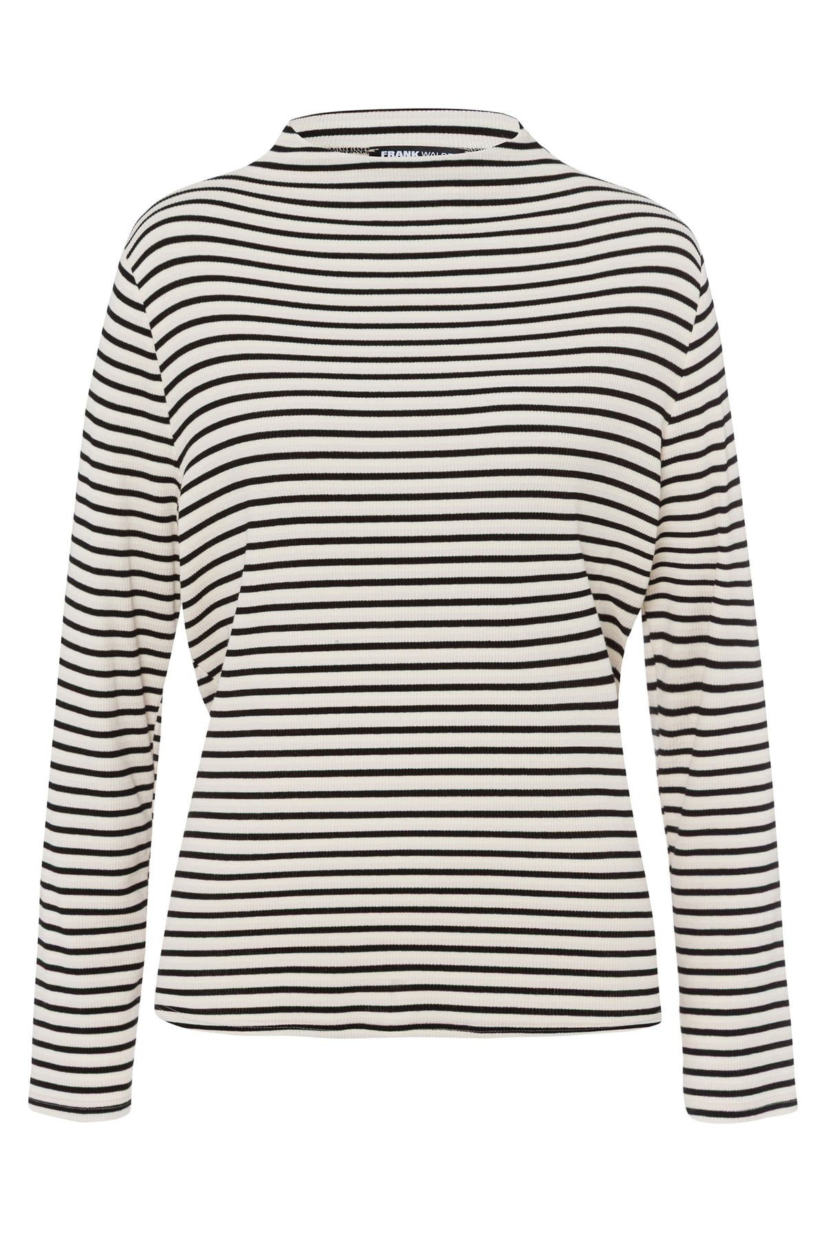 A monochrome staple with tactile appeal, the Frank Walder 508414 Cream Black Stripe Long Sleeve T-Shirt 030 081 offers ribbed comfort in a clean, linear design. Its high neckline and stretch finish make it ideal for layering or standalone wear.