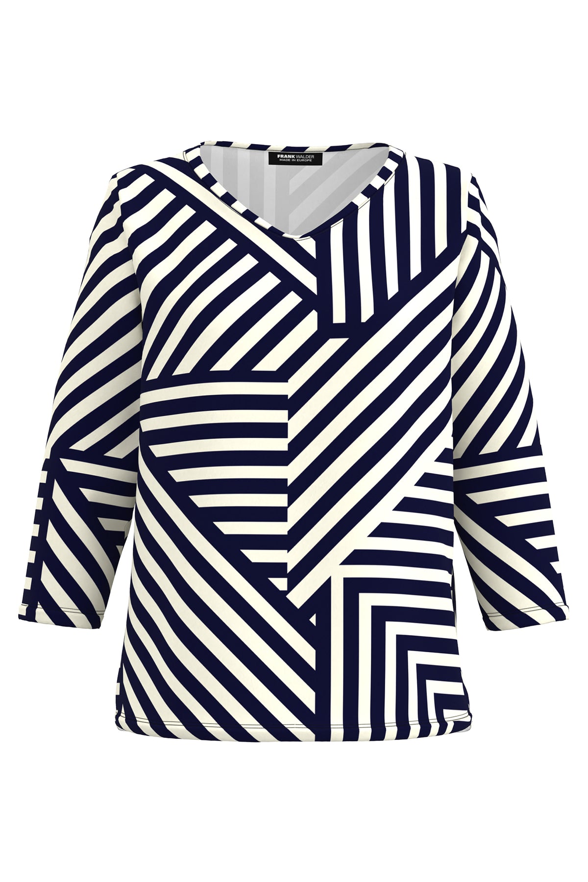Frank Walder 725.406 Navy Geometric Print 3/4 Sleeve Top 539 059