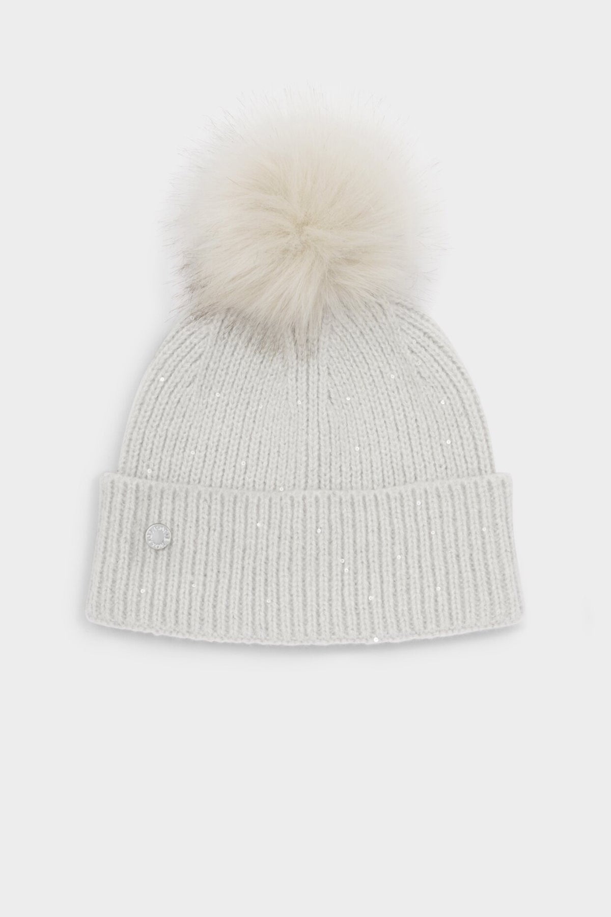 Katie Loxton KLS705 Pale Grey Sequin Pom Pom Hat