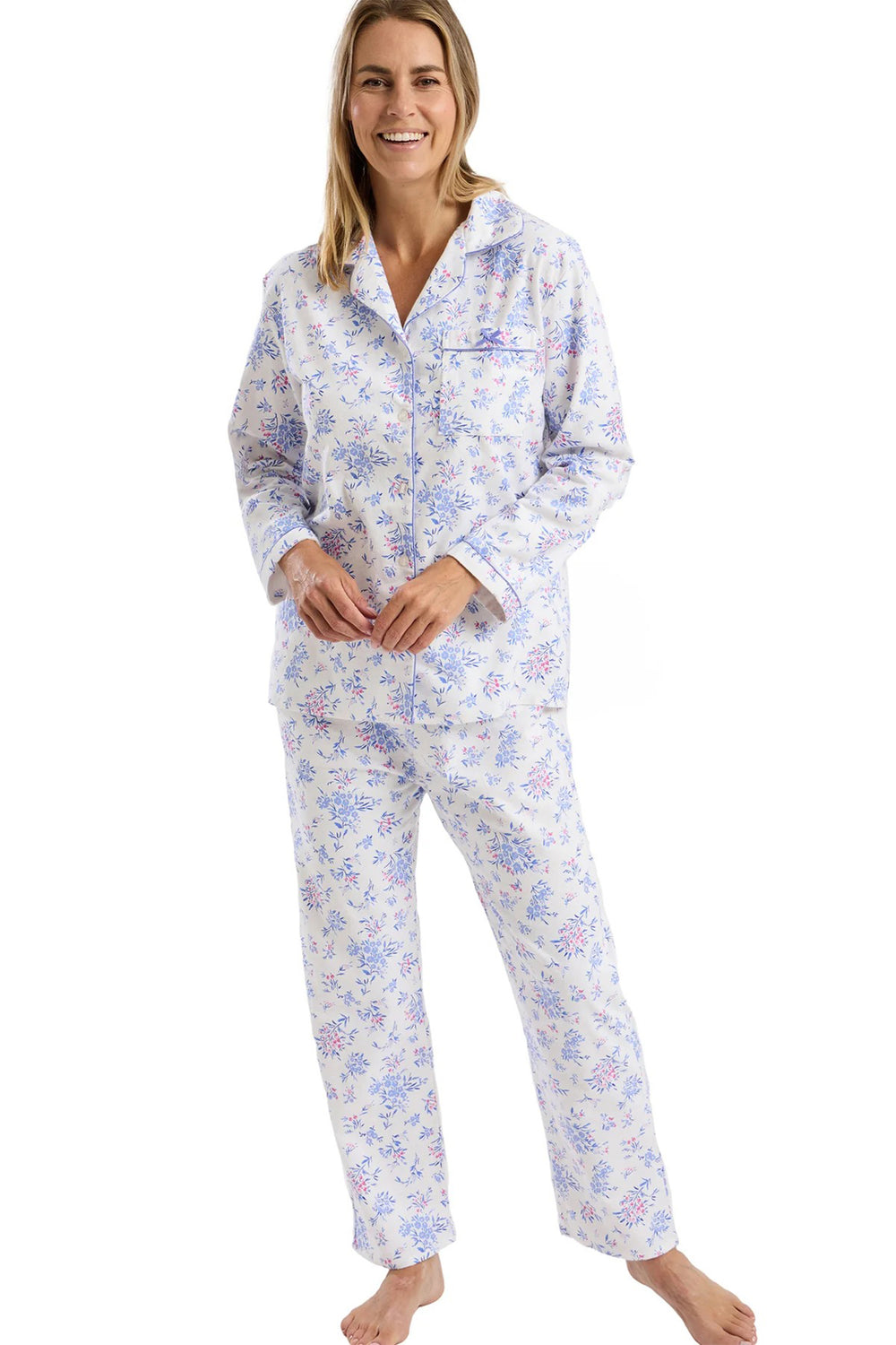 Marlon MA45751 Blue Floral Bouquet Print Cosy Wincyette Revere Collar Pyjama
