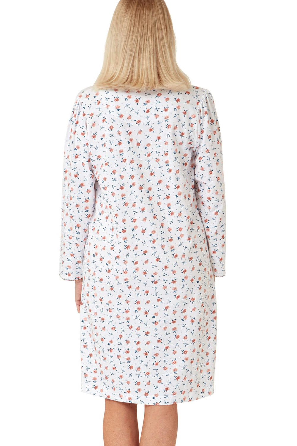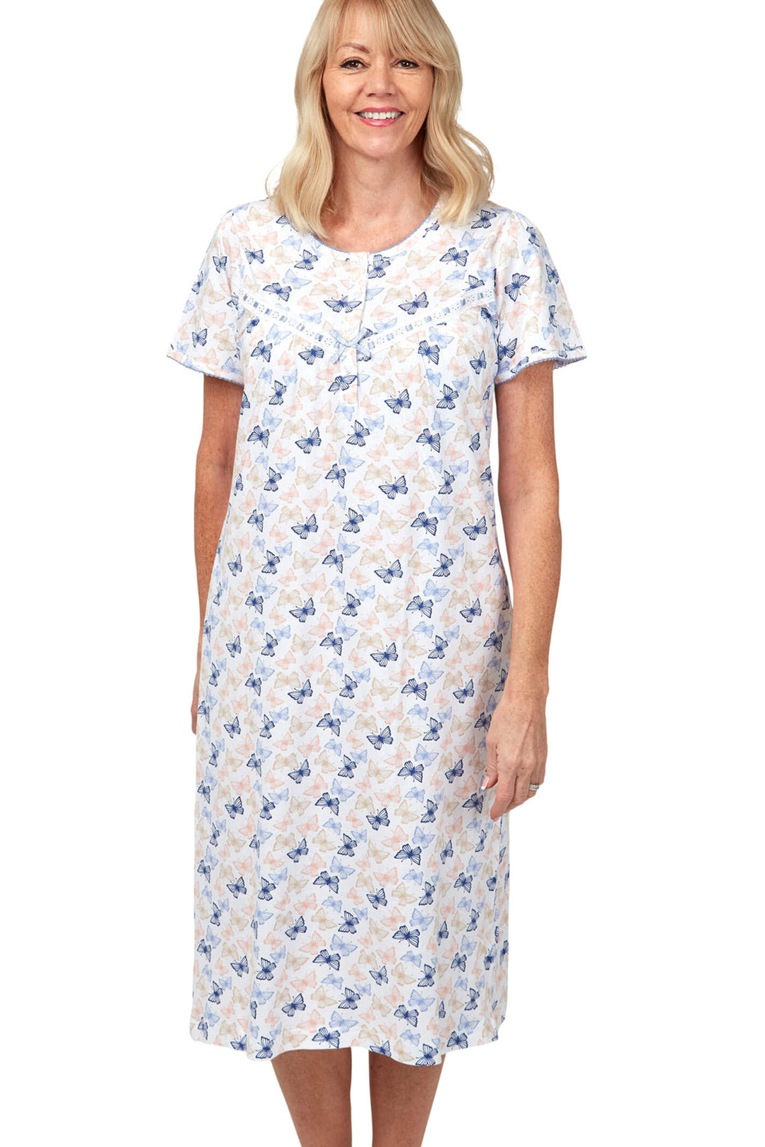 Marlon Linear Floral Blue Cotton Jersey Button Through Short Sleeve Nightdress MA44303