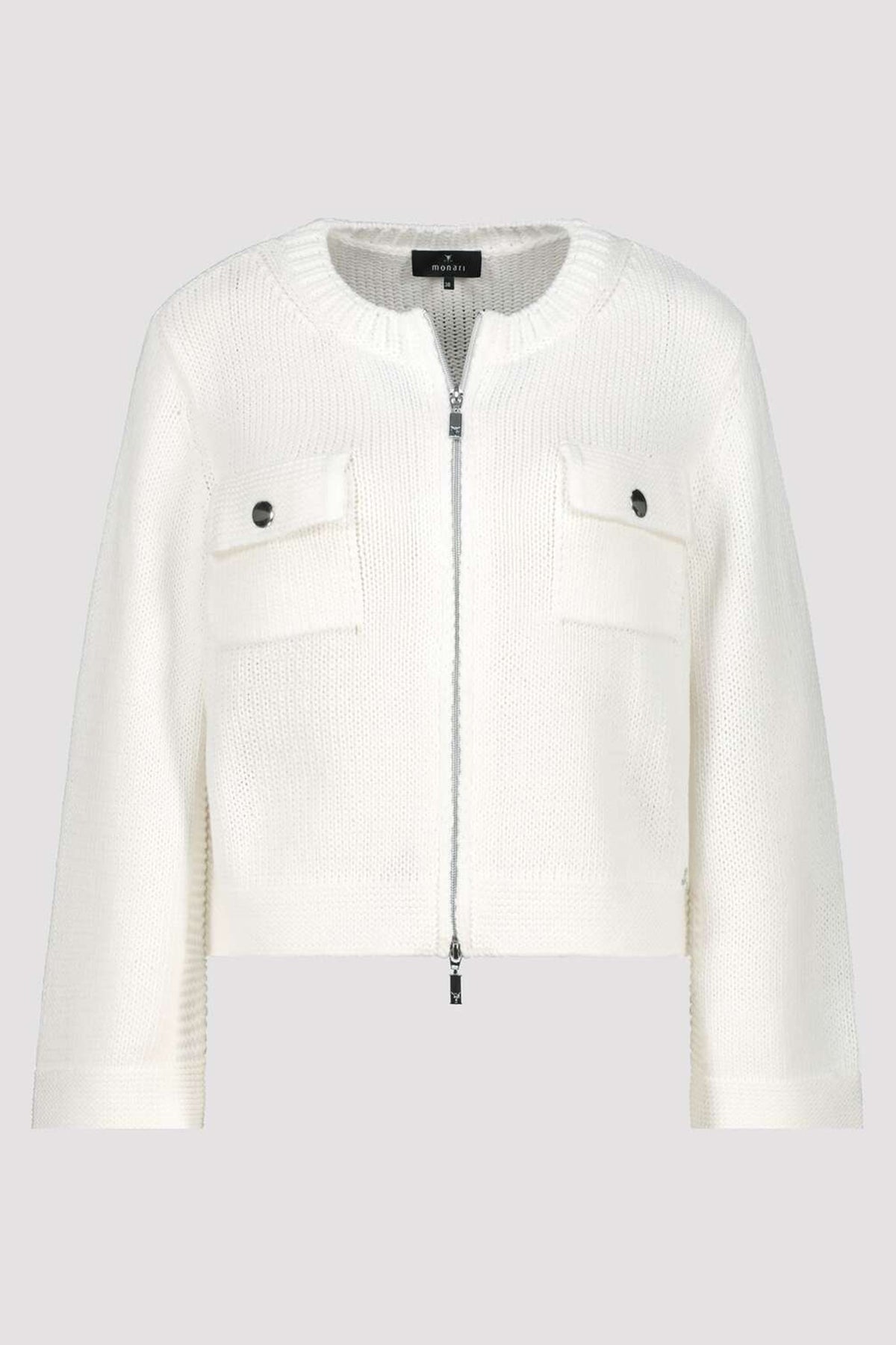 Monari 410209 102 Off-White Zip Front Patch Pocket Cardigan