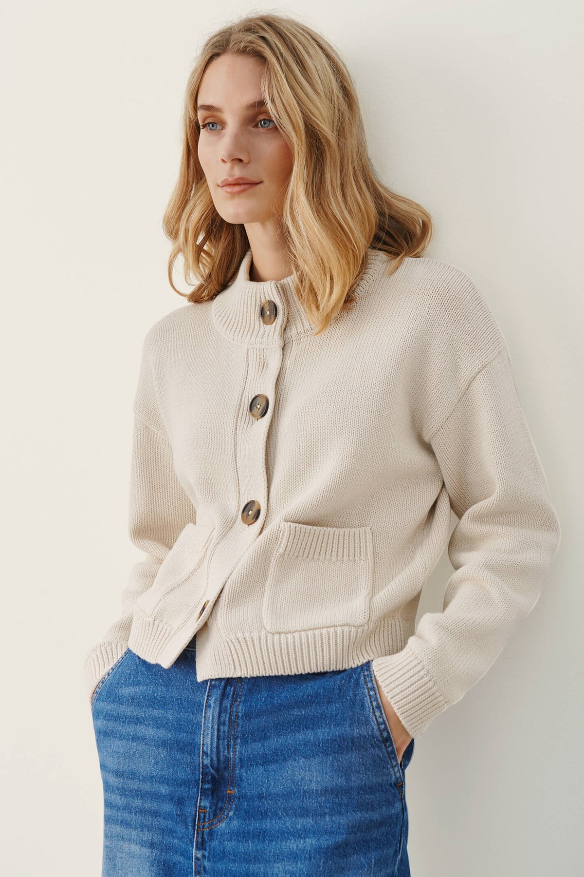 Part Two 30307966 ClenePW 120304 Cream Cardigan will instantly elevate your wardrobe. With key features like oversized buttons, dropped shoulders, and a deep ribbed collar, you'll be stylish and comfortable in any season.