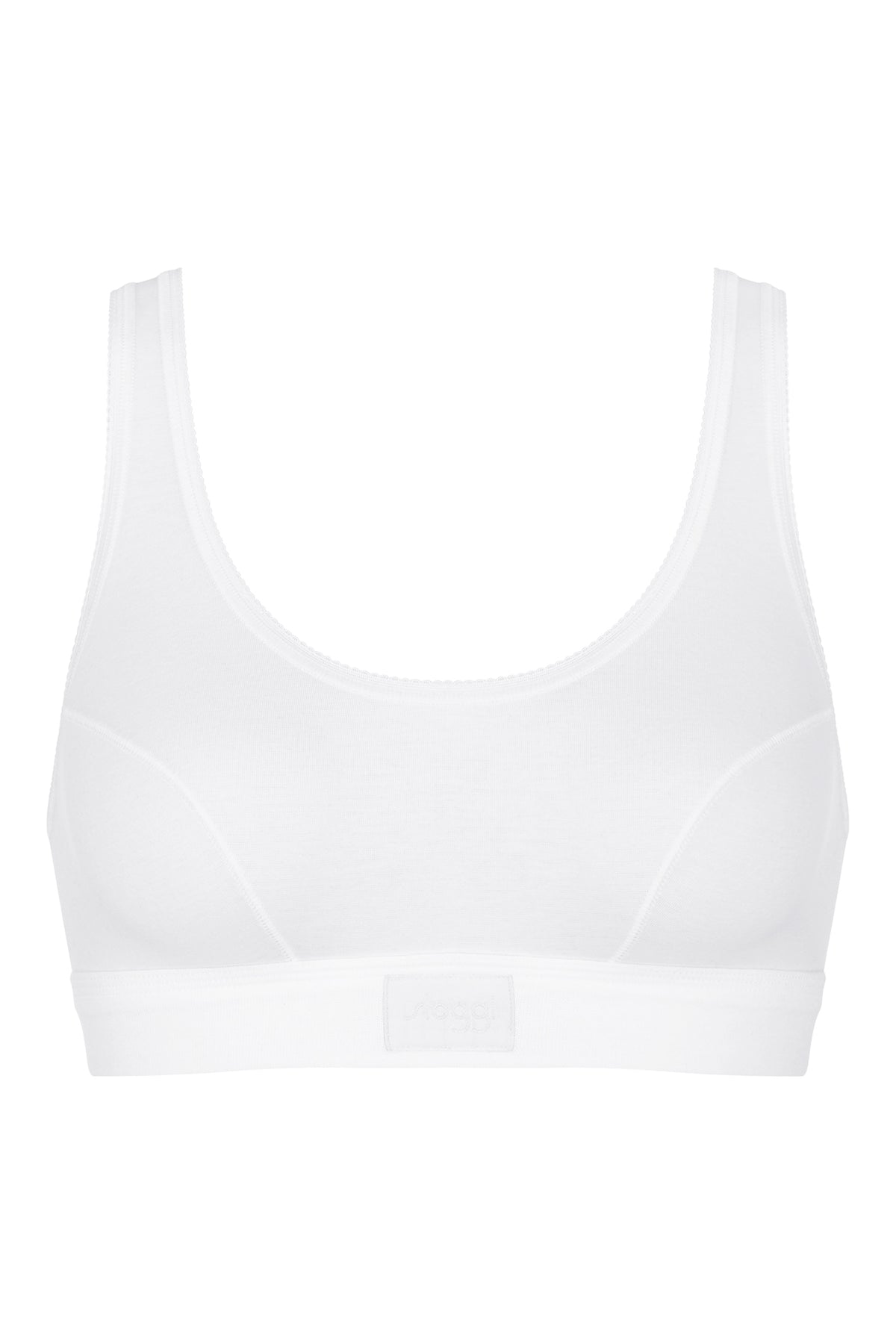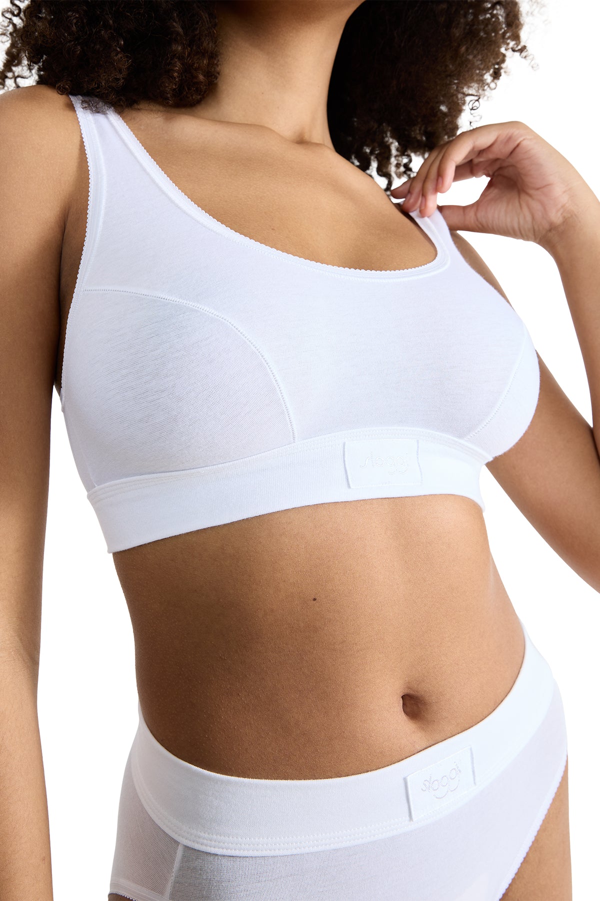 Sloggi 10222797 0003 White Double Comfort Top is a cotton‑rich bralette designed for everyday comfort—ideal for layering or wearing alone, with a seamless finish and supportive underband.