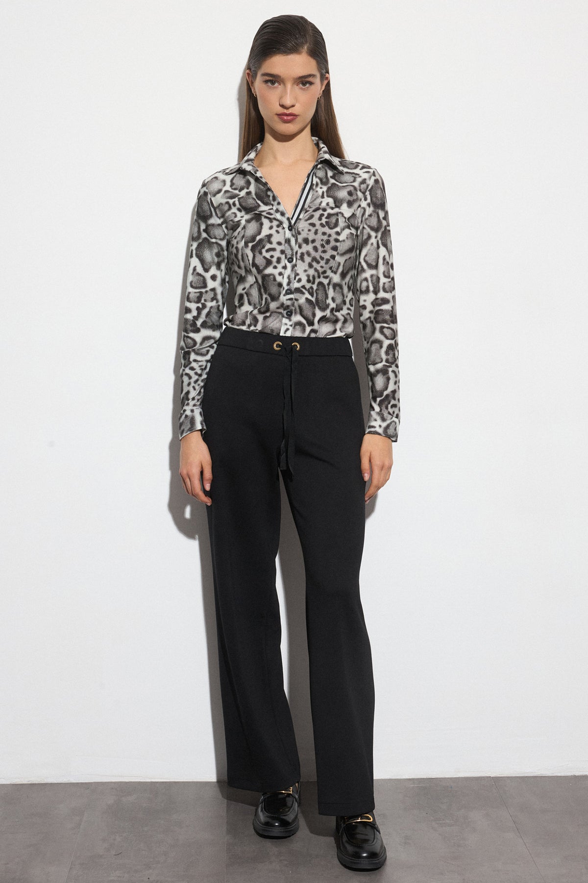 Add relaxed polish to your wardrobe with the Tinta Urda Black Drawstring Waist Pull-On Trousers, ideal for office wear, casual lunches, or everyday comfort. Designed with a flattering straight-leg silhouette and adjustable waist, this pair blends ease with understated structure.