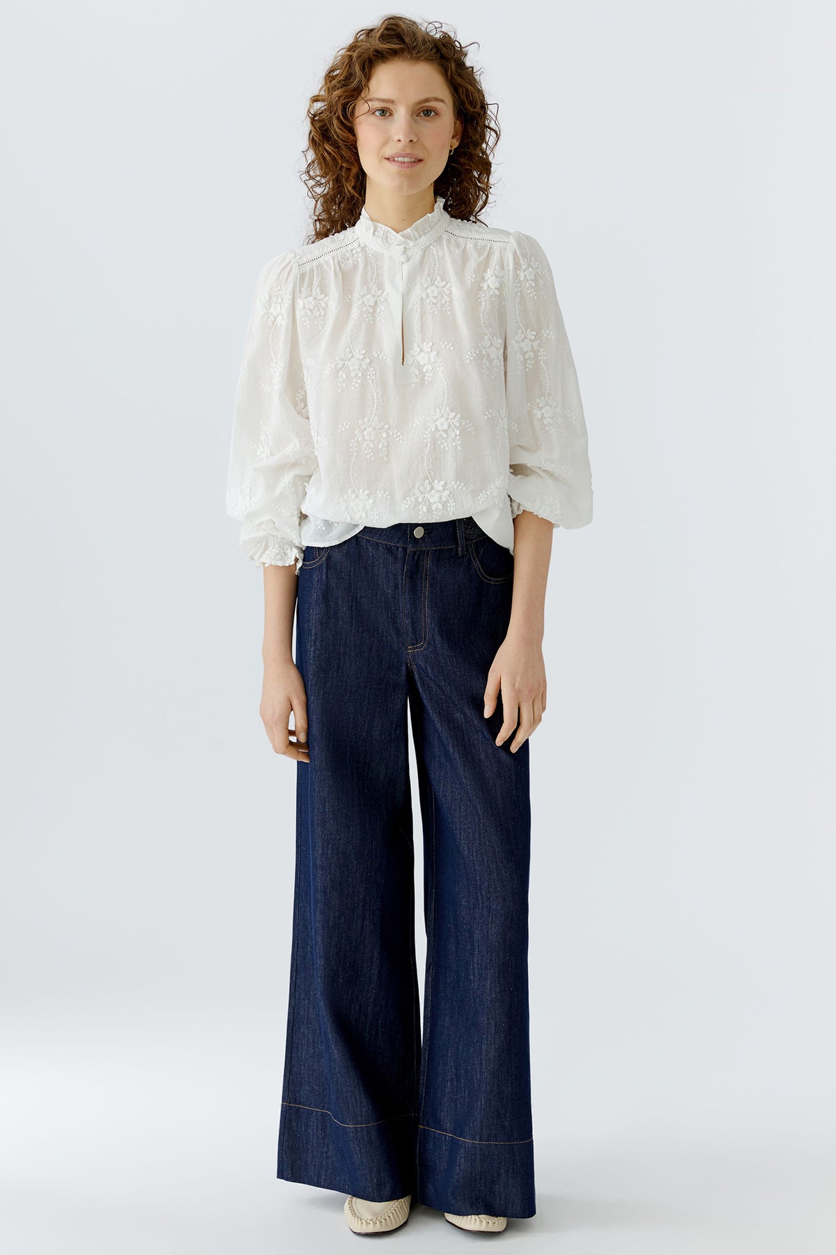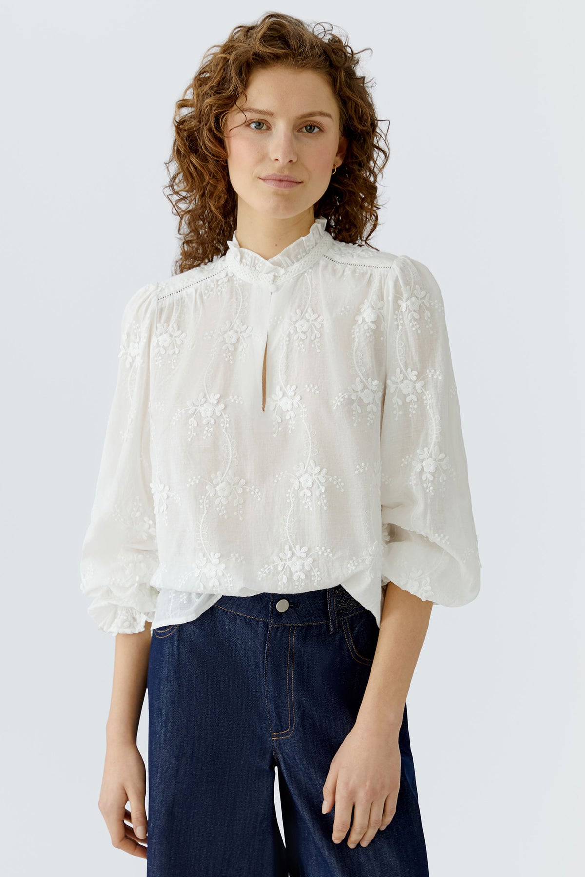 Oui 96713 1006 White Cloud Dancer Embroidered Blouse
