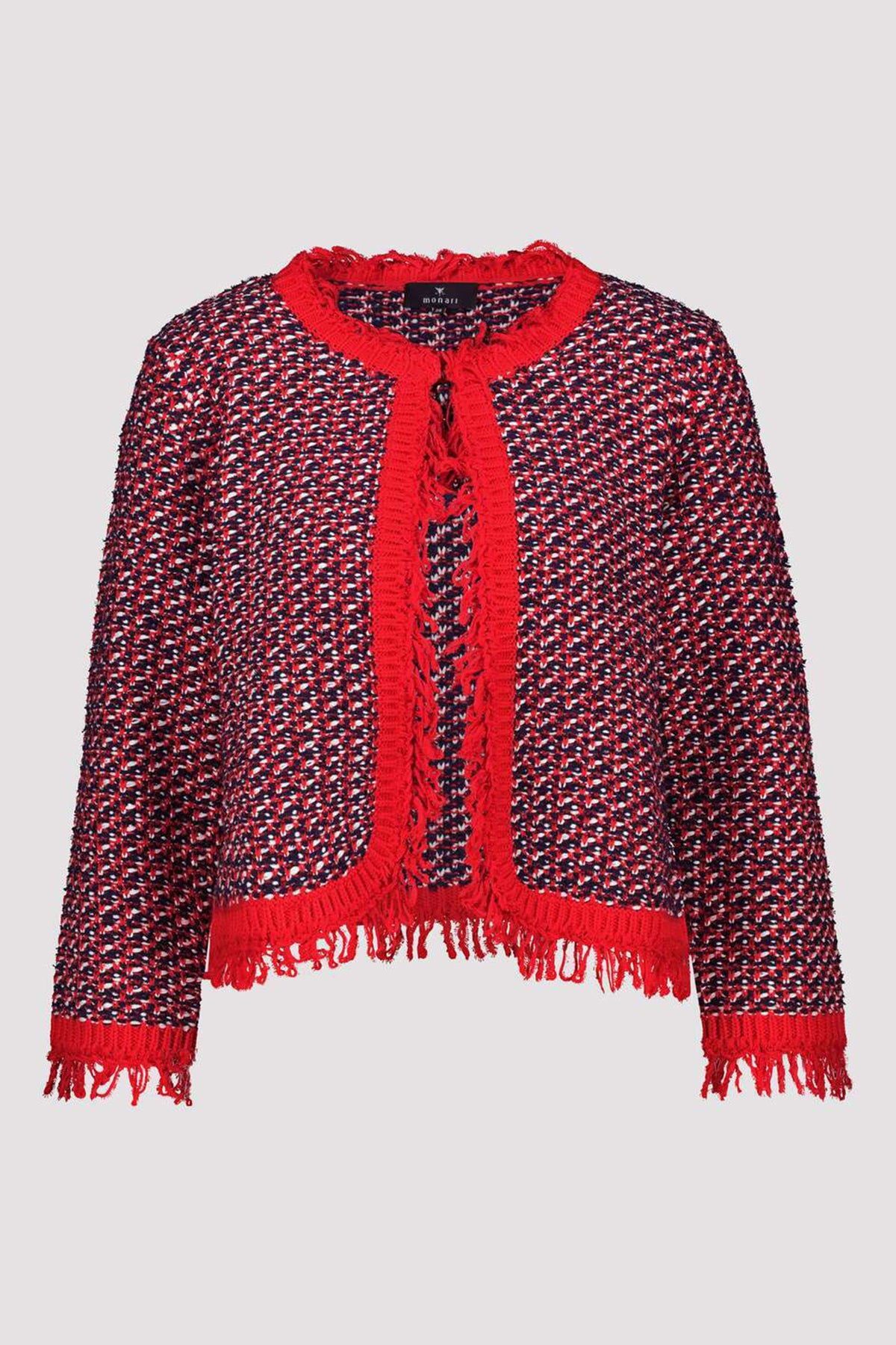 Monari 410386 755 Marine Navy Red Tweed Throw Jacket With Fringe