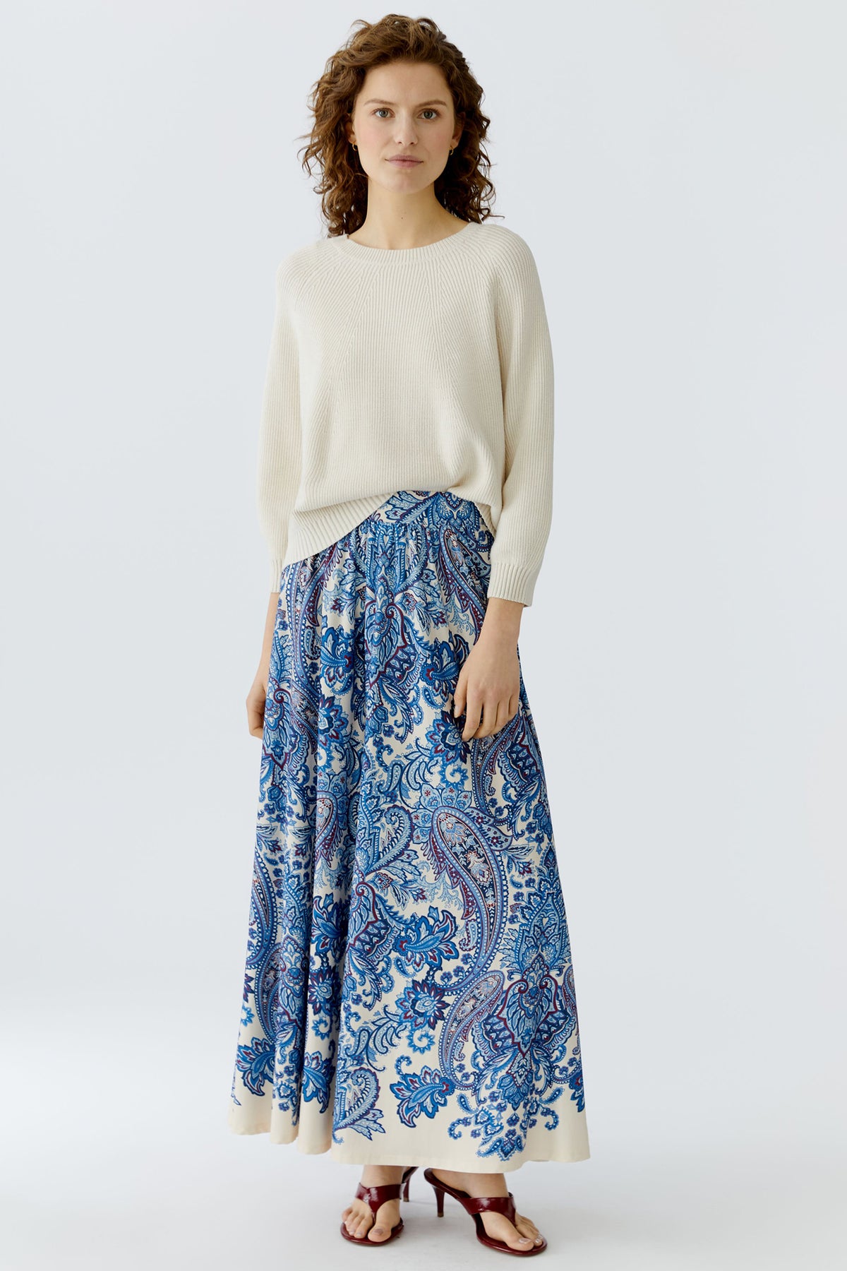 Oui Off White Round Neck Ribbed Jumper is a classic knit essential that combines simplicity with subtle texture. Crafted in a soft off-white shade, this jumper features a timeless round neckline and finely ribbed detailing for added visual interest. The relaxed fit and raglan sleeves ensure comfort and ease, making it perfect for layering over jeans, skirts, or tailored trousers for versatile everyday style.