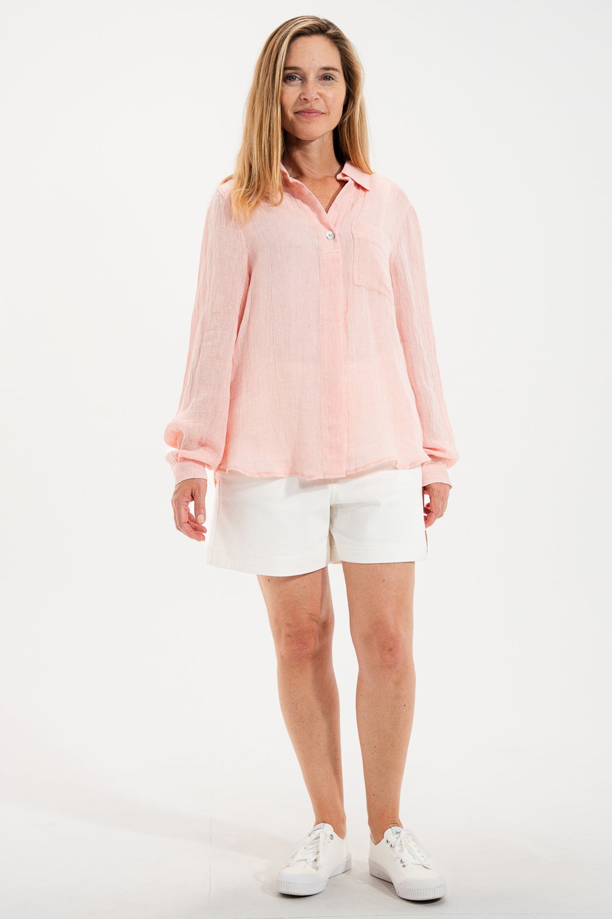 Mat De Misaine Cyclade 4740F Pink Ecaille Linen Blend Shirt