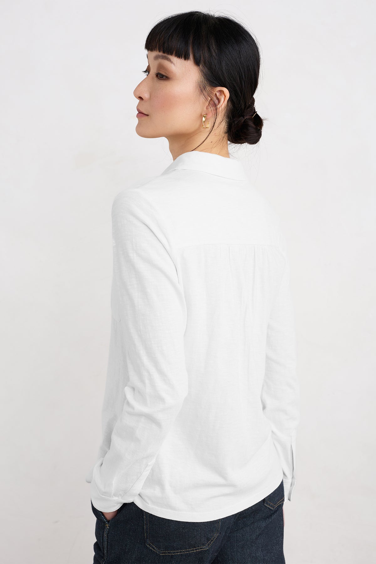 - Long sleeves with button cuffs