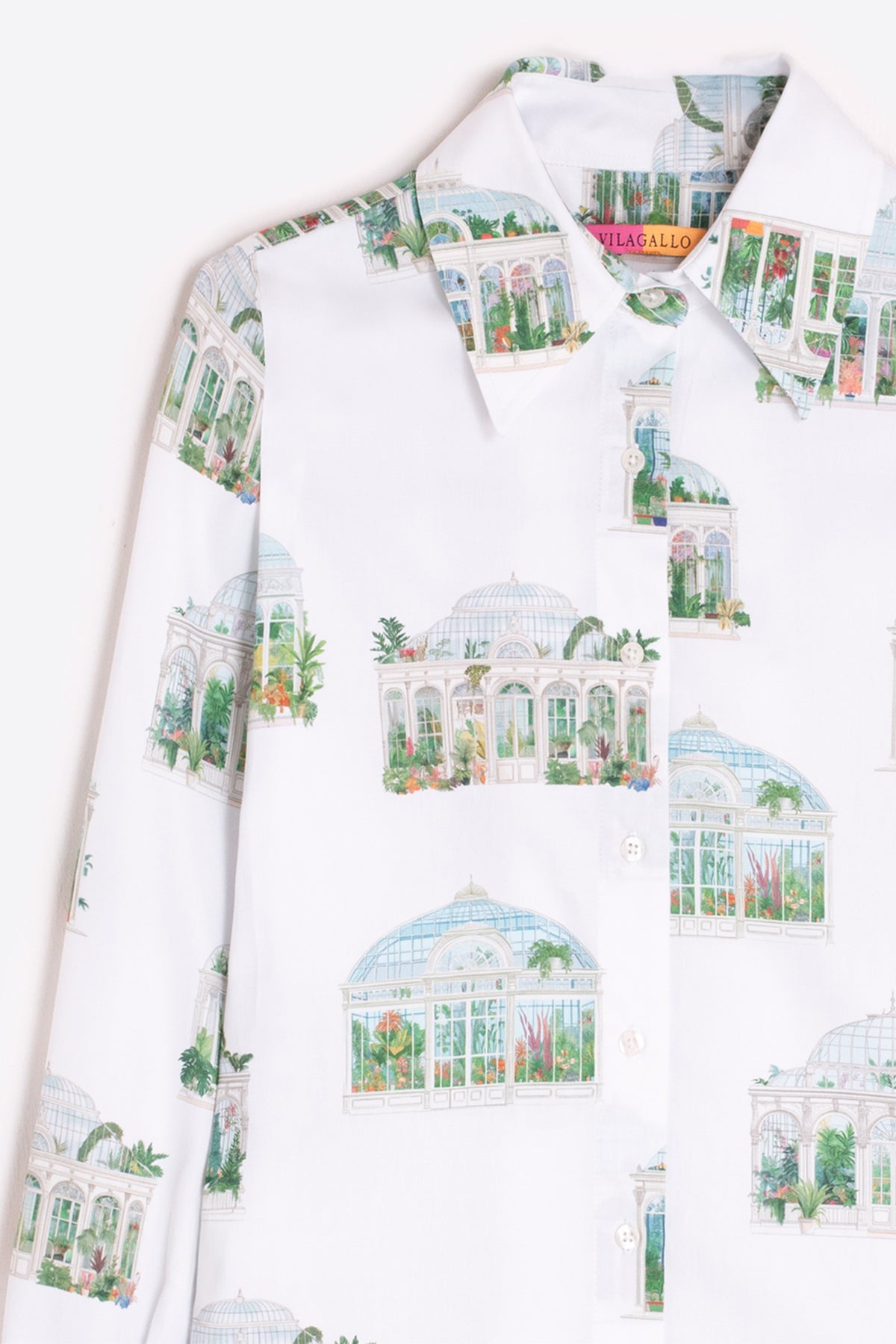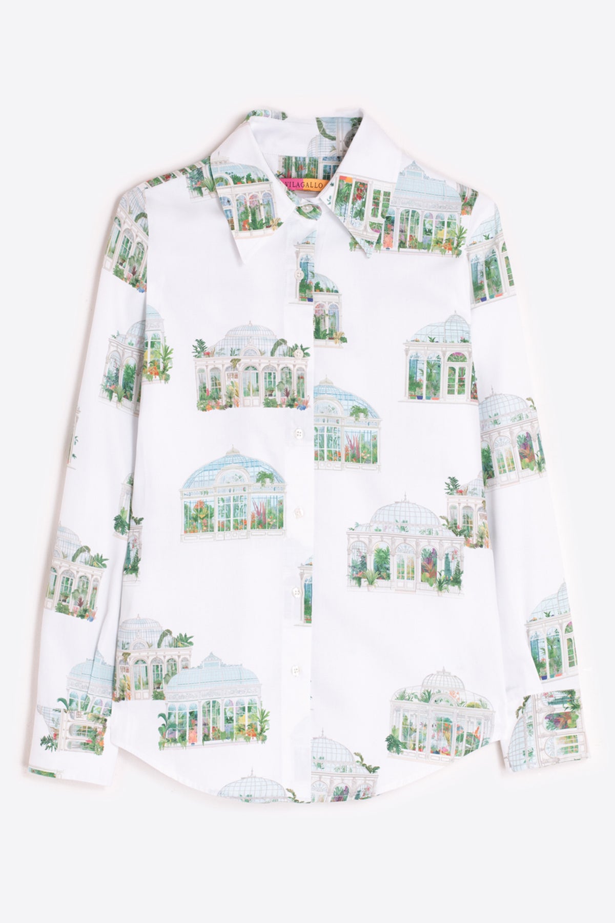 Bring a fresh, feel-good twist to classic shirting with the Vilagallo 33309 White Greenhouse Print Shirt. Set on a crisp white base, the playful greenhouse illustrations are filled with soft greens and pops of colour, giving this button-through shirt a charming, conversation-starting finish. With its smart collar, long sleeves and easy shape, itβs the perfect piece to lift denim, brighten tailoring or add something a little different to your everyday wardrobe.