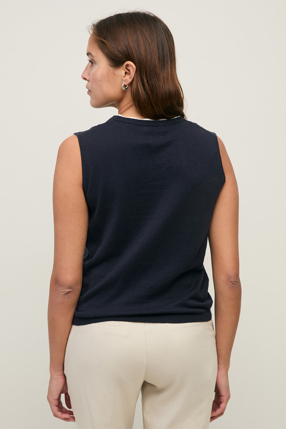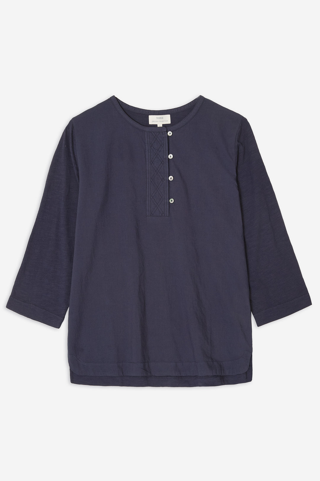 Yerse 44018 Navy Button Neck Organic Cotton Top AGATA44