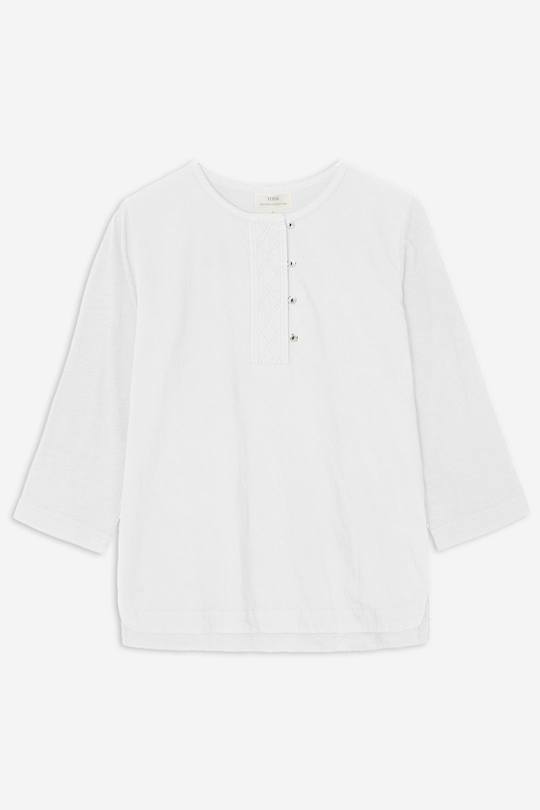 Yerse 44018 White Button Neck Organic Cotton Top AGATA44