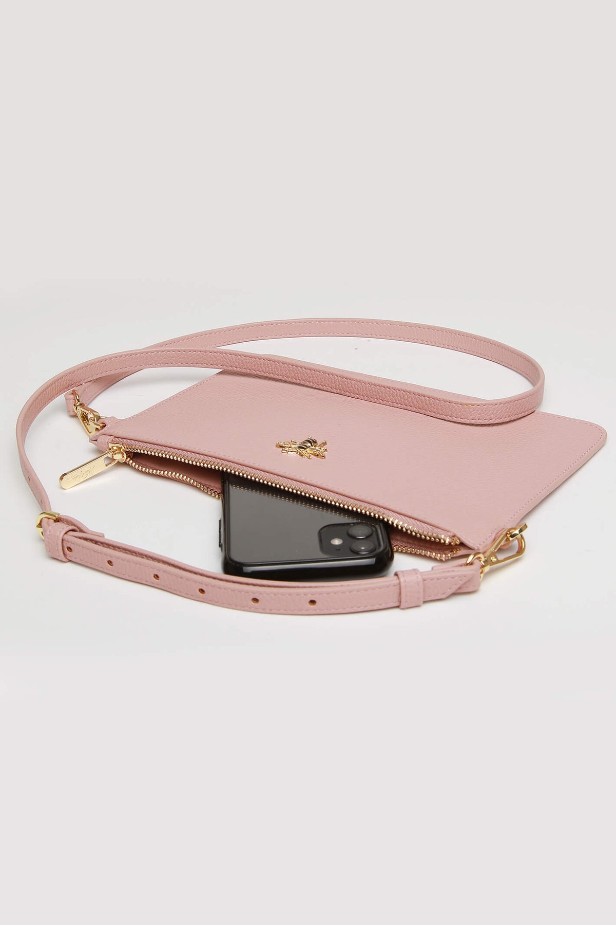 The Alice Wheeler AW5754 Pink Ealing Phone/Clutch Pouch Bag is an ideal everyday accessory. Featuring a sleek vegan leather construction with adjustable straps, this slim cross body pouch bag offers ultimate convenience and a stylish look. With a pull and zip fastening and gold metal toned clasps, enjoy stylish convenience. The straps can also be completely removed for a clutch-style bag.
