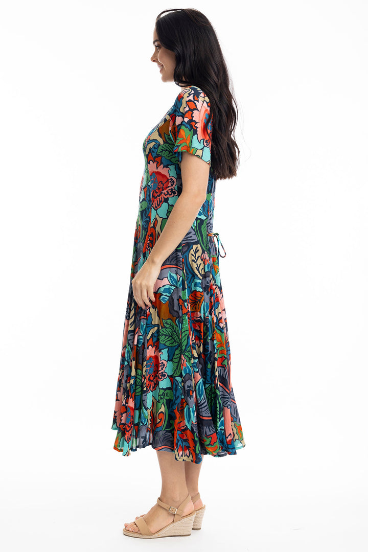 Orientique Dress Cape Verde Godet Short Sleeves Print 40017