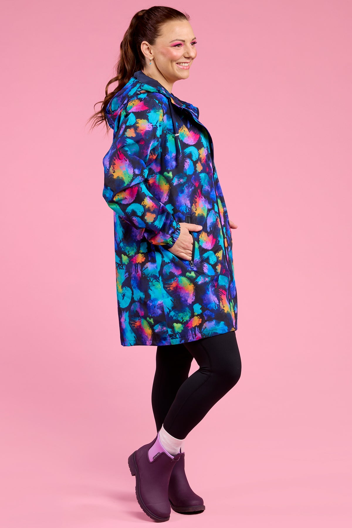 Wilderly LLR-RSP Navy Rainbow Splatter Longline Raincoat